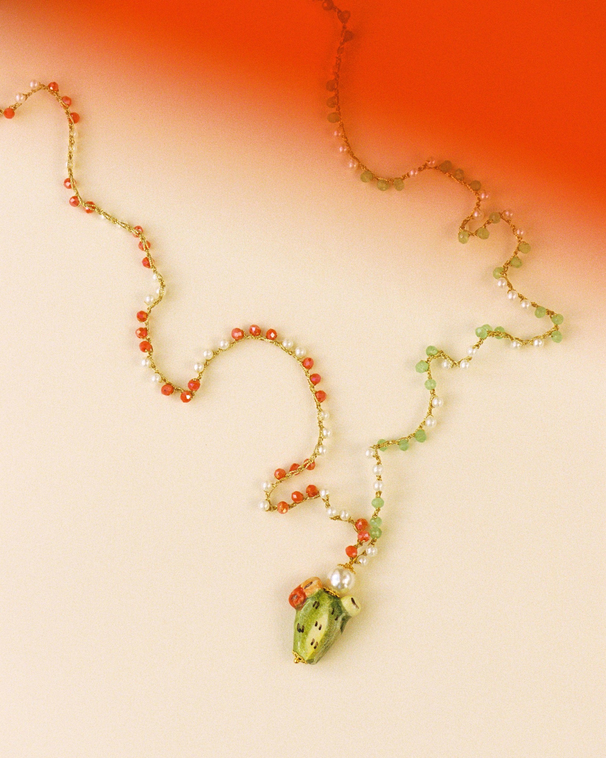 This long necklace celebrates the wild and juicy spirit of the desert world with a fresh and playful twist. The perfect piece for those who dare to bloom even under the hottest sun