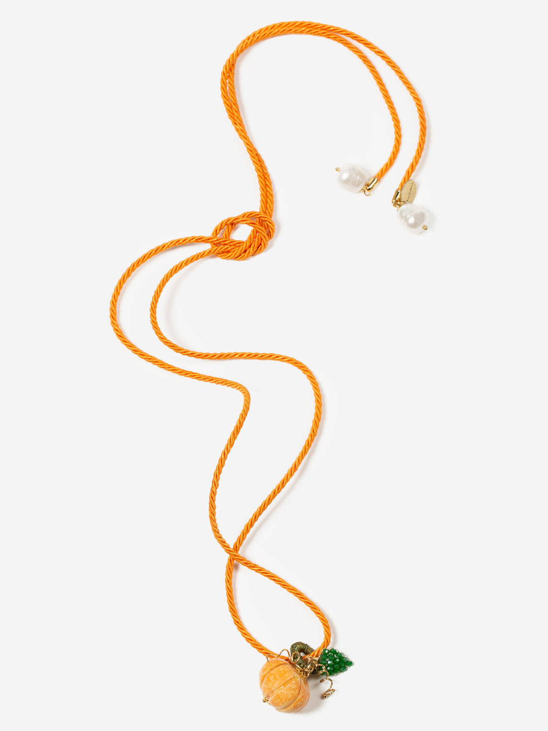 ZUCCA, LONG NECKLACE WITH CORD AND ORANGE PUMPKIN.
