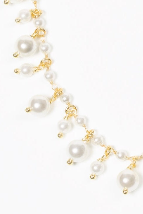 A garden suspended in gold: pearls hanging delicately from a golden chain, like drops of light in full bloom.