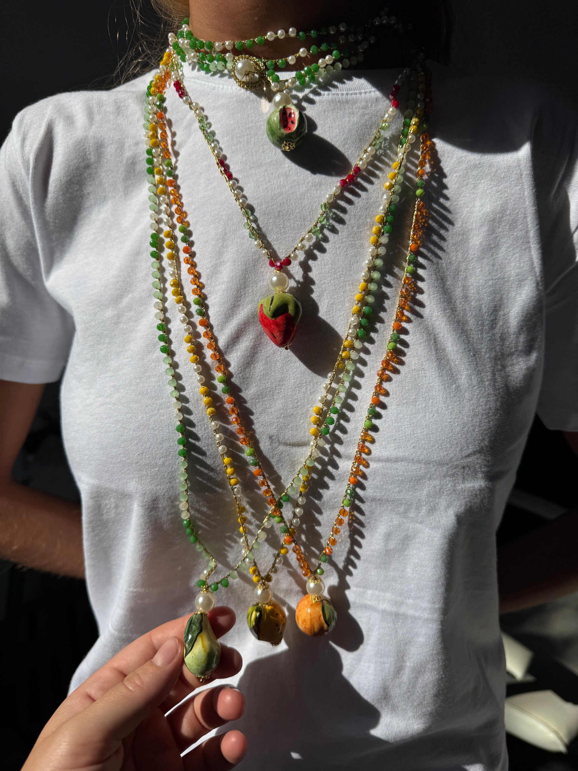 "Lo que más me gusta de esta marca es la creatividad y la originalidad en cada joya. Las combinaciones de materiales y colores son algo que no se encuentra en ninguna otra parte. Estoy encantada con mi Collar Cavalluccio Marino"