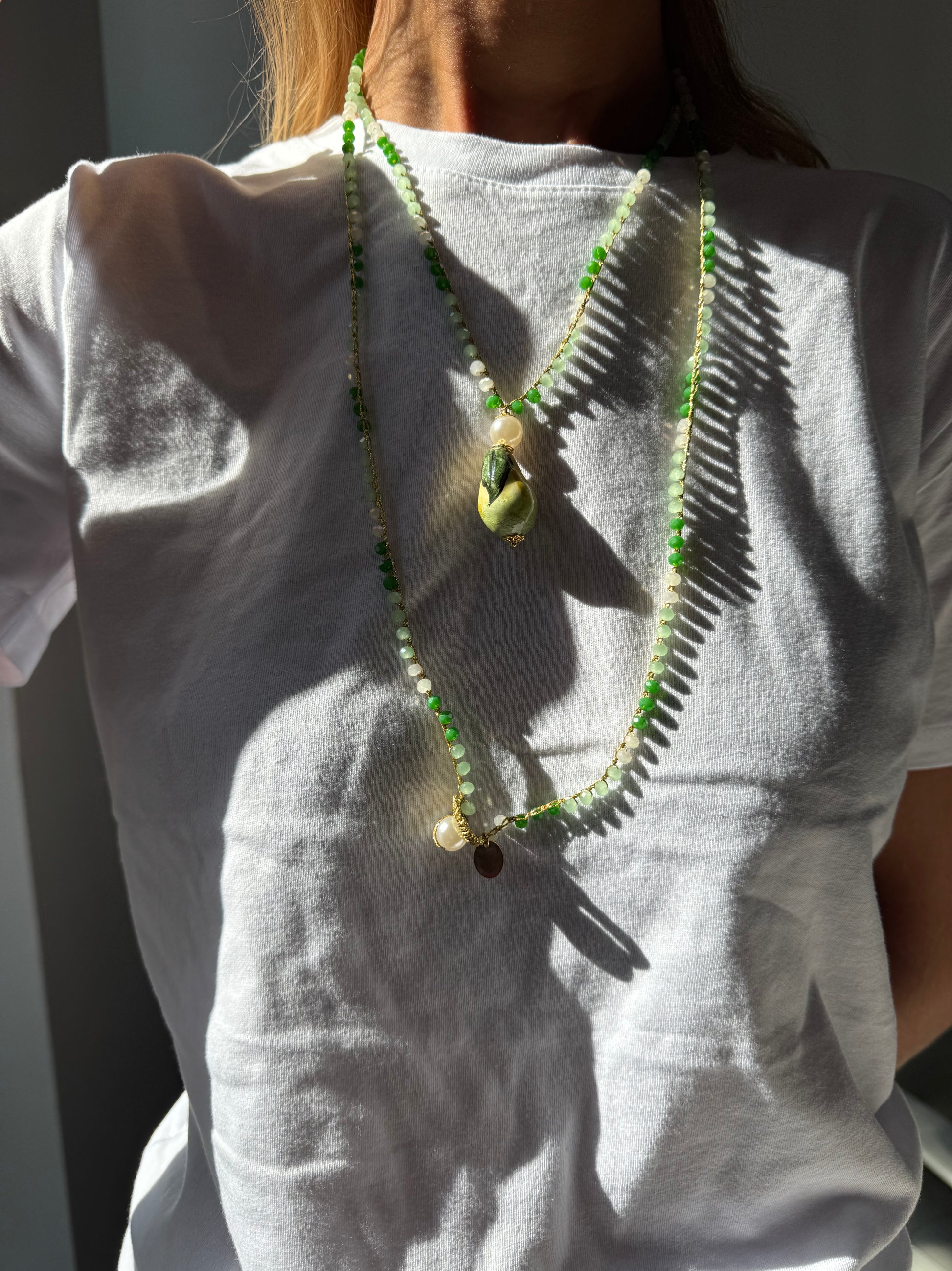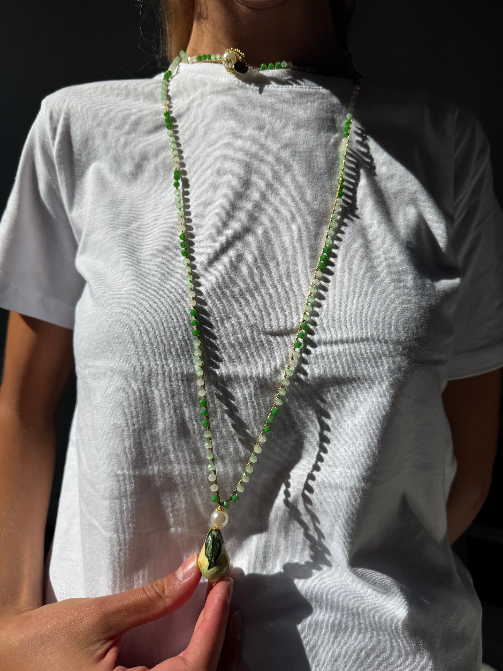PERA, COLLAR LARGO CON HILO TRENZADO Y CERÁMICA VERDE