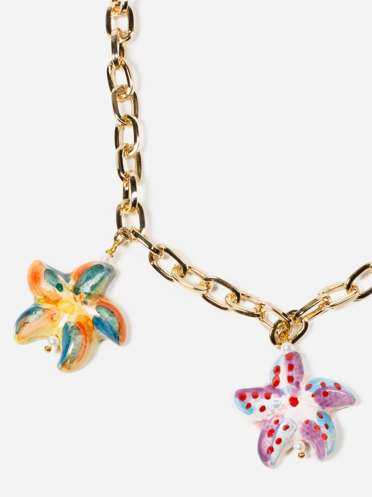 DUE STELLE, COLLAR DE CADENA DORADA CON DOS ESTRELLAS DE CERÁMICA EN ROSA Y AMARILLO