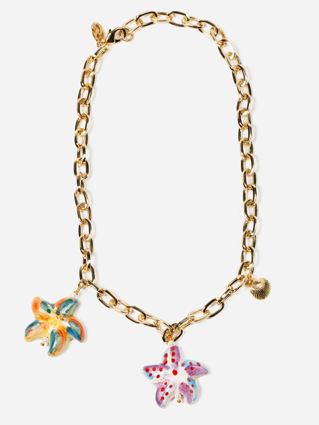 Cadena de latón chapado en oro. Estrellas de cerámica siciliana de Caltagirone y pintadas a mano.