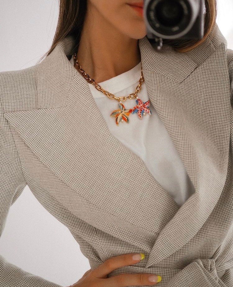 "Lo que más me gusta de esta marca es la creatividad y la originalidad en cada joya. Las combinaciones de materiales y colores son algo que no se encuentra en ninguna otra parte. Estoy encantada con mi Collar Cavalluccio Marino"