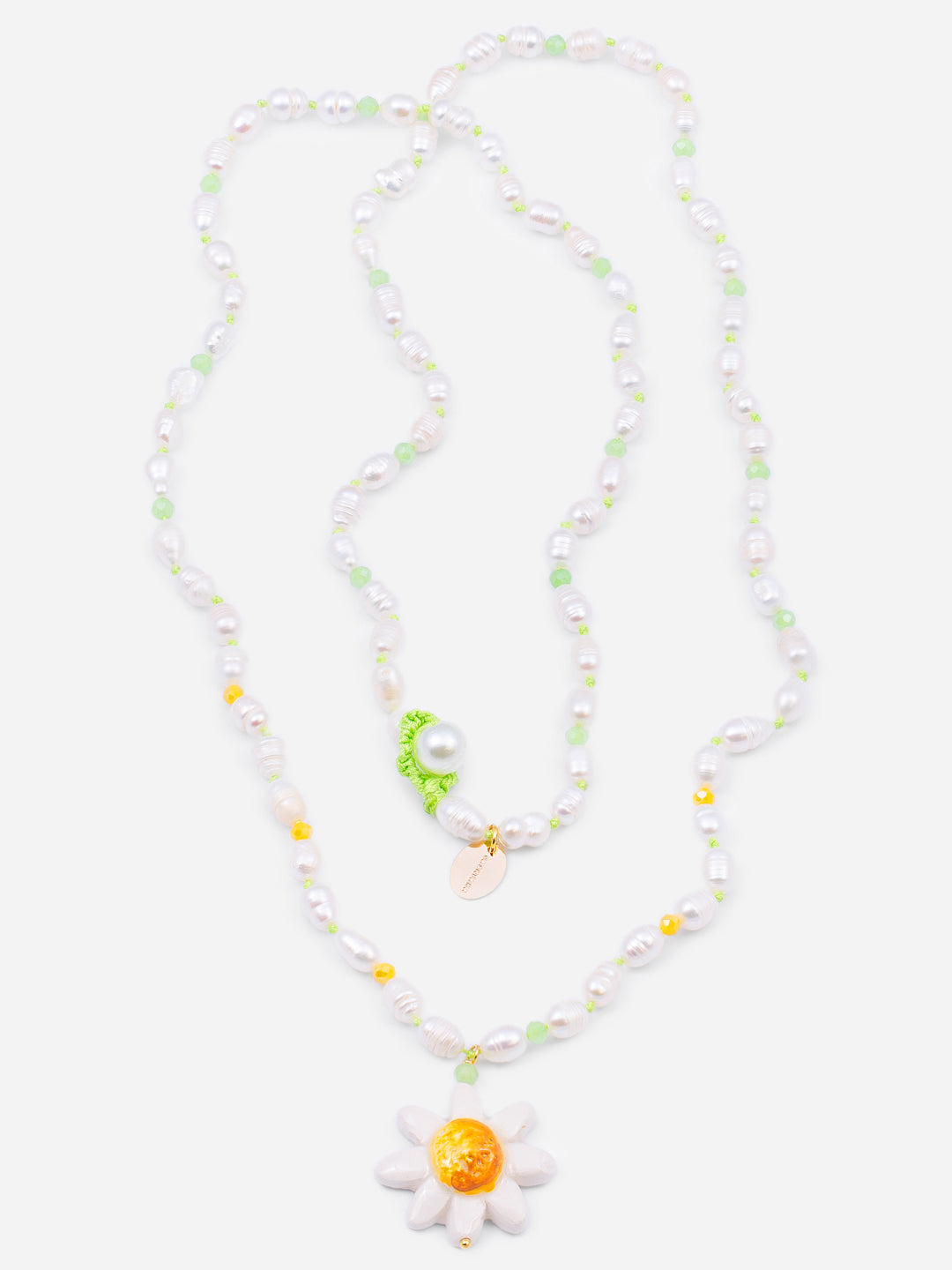 THE ONE, COLLAR DE PERLAS Y CUENTAS EN COLOR PASTEL CON MARGARITA DE CERÁMICA