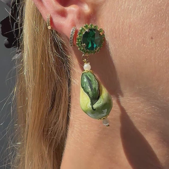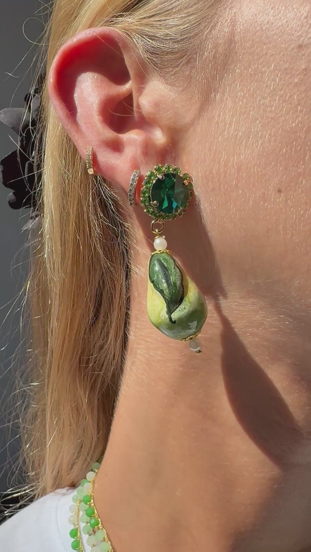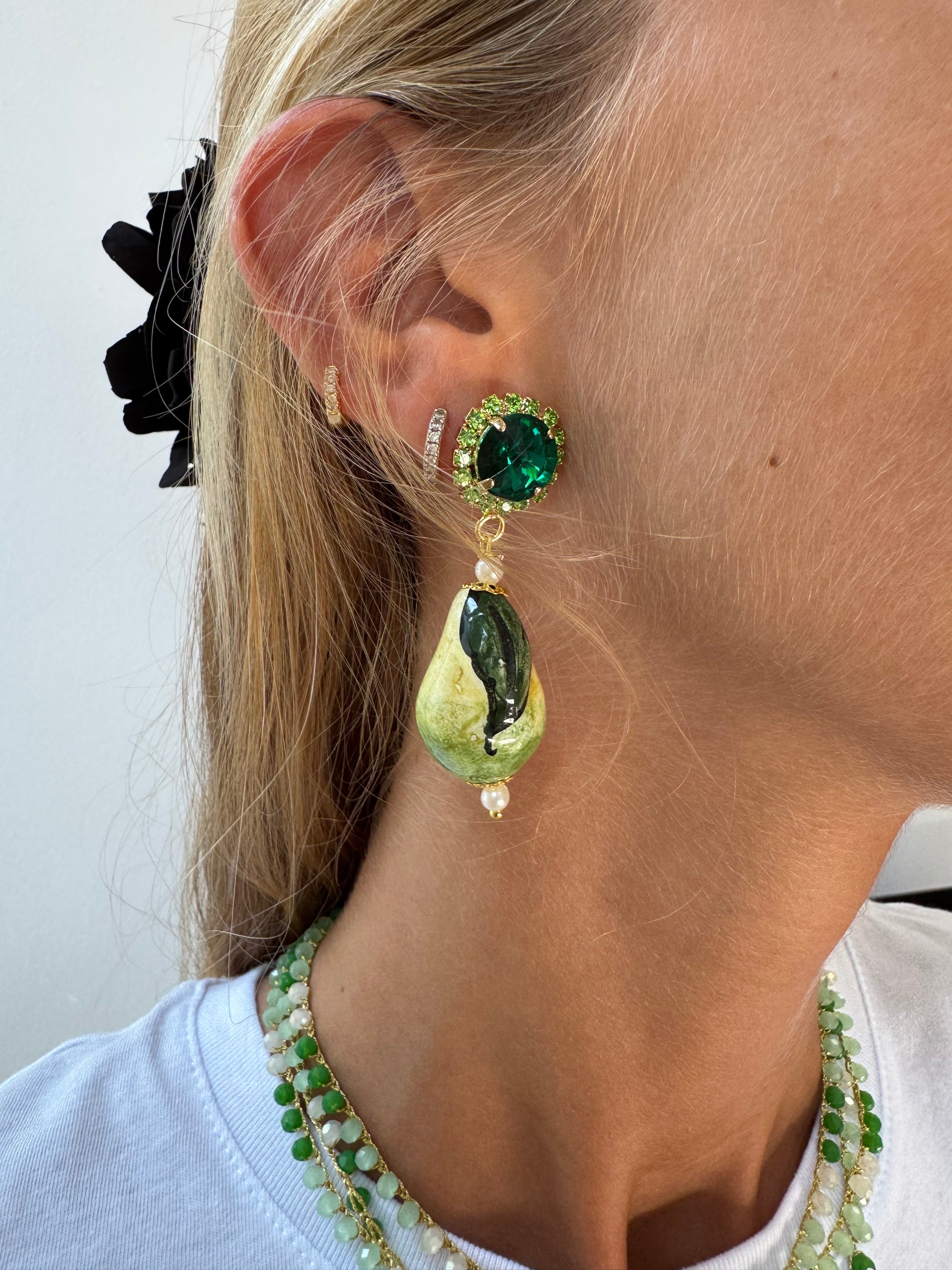 Pequeñas, verdes y con mucho encanto. Las Mini Pera no son frutas, pero dan ganas de morderlas. Hechas en cerámica con forma de pera, estas piezas combinan lo artesanal con un guiño juguetón y natural. Ligeras y llenas de personalidad, son ese detalle que alegra el día y saca una sonrisa. Perfectas para quienes llevan siempre algo de frescura encima, como un paseo por el mercado o una tarde entre árboles frutales. Pequeñas joyas que saben a verano.