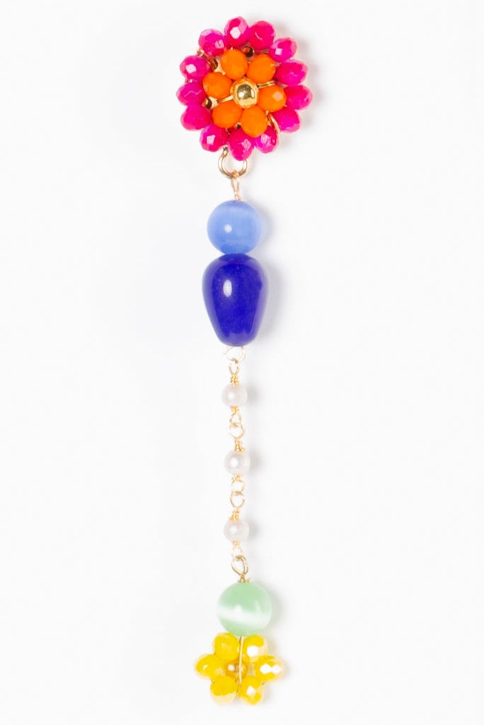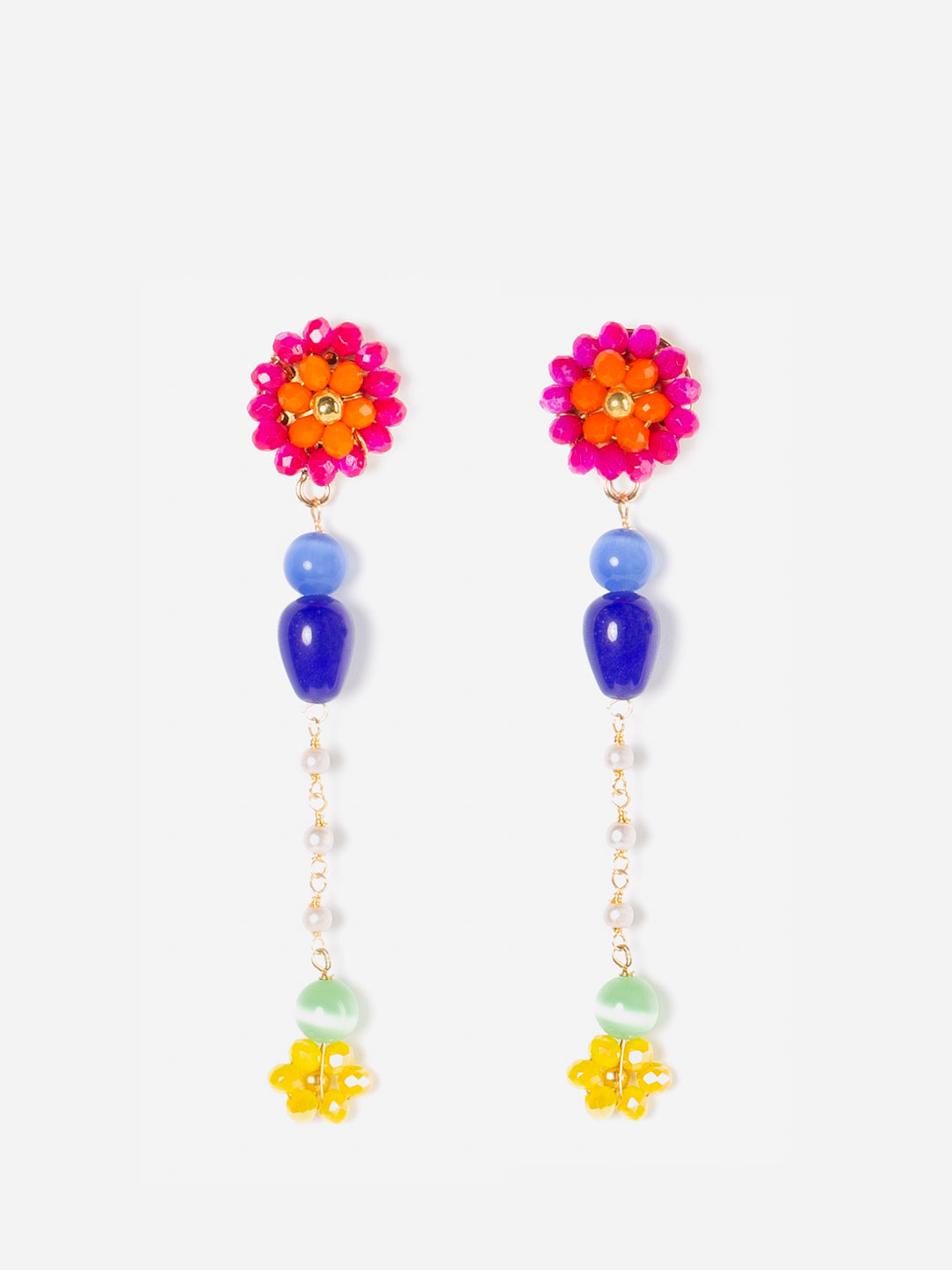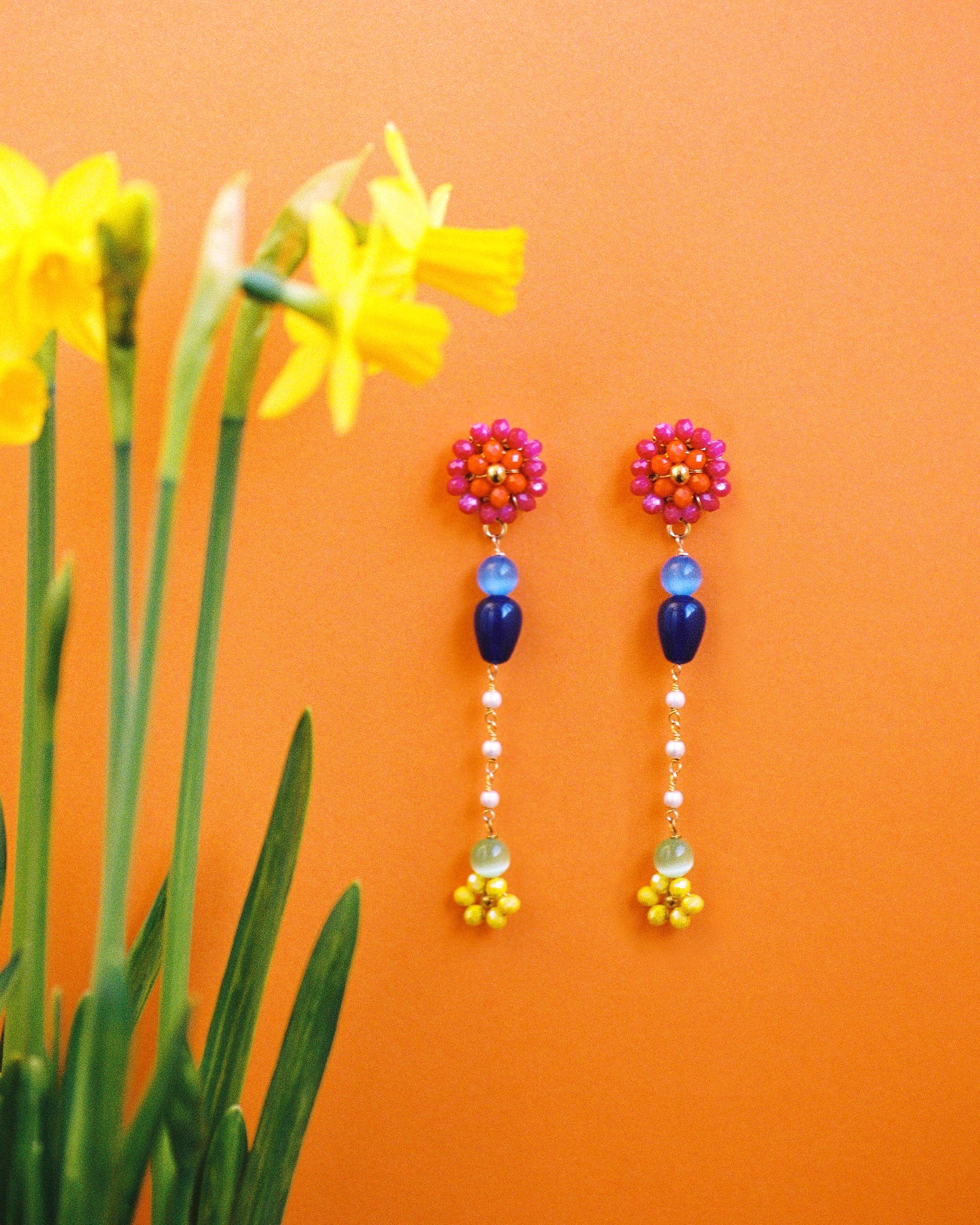 Como un ramo en plena explosión de color, los pendientes Peonias florecen con cada movimiento. Largos y ligeros, están formados por delicadas cuentas de cristales multicolor que caen como pétalos danzando al viento.